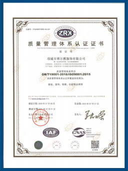 公司已通過ISO9001:2015質(zhì)量管理體系認(rèn)證、ISO14001:2015環(huán)境管理體系認(rèn)證、ISO45001:2018職業(yè)健康安全管理體系認(rèn)證。產(chǎn)品已通過中國檢驗(yàn)認(rèn)證集團(tuán)檢測。企業(yè)信用等級為AAA。